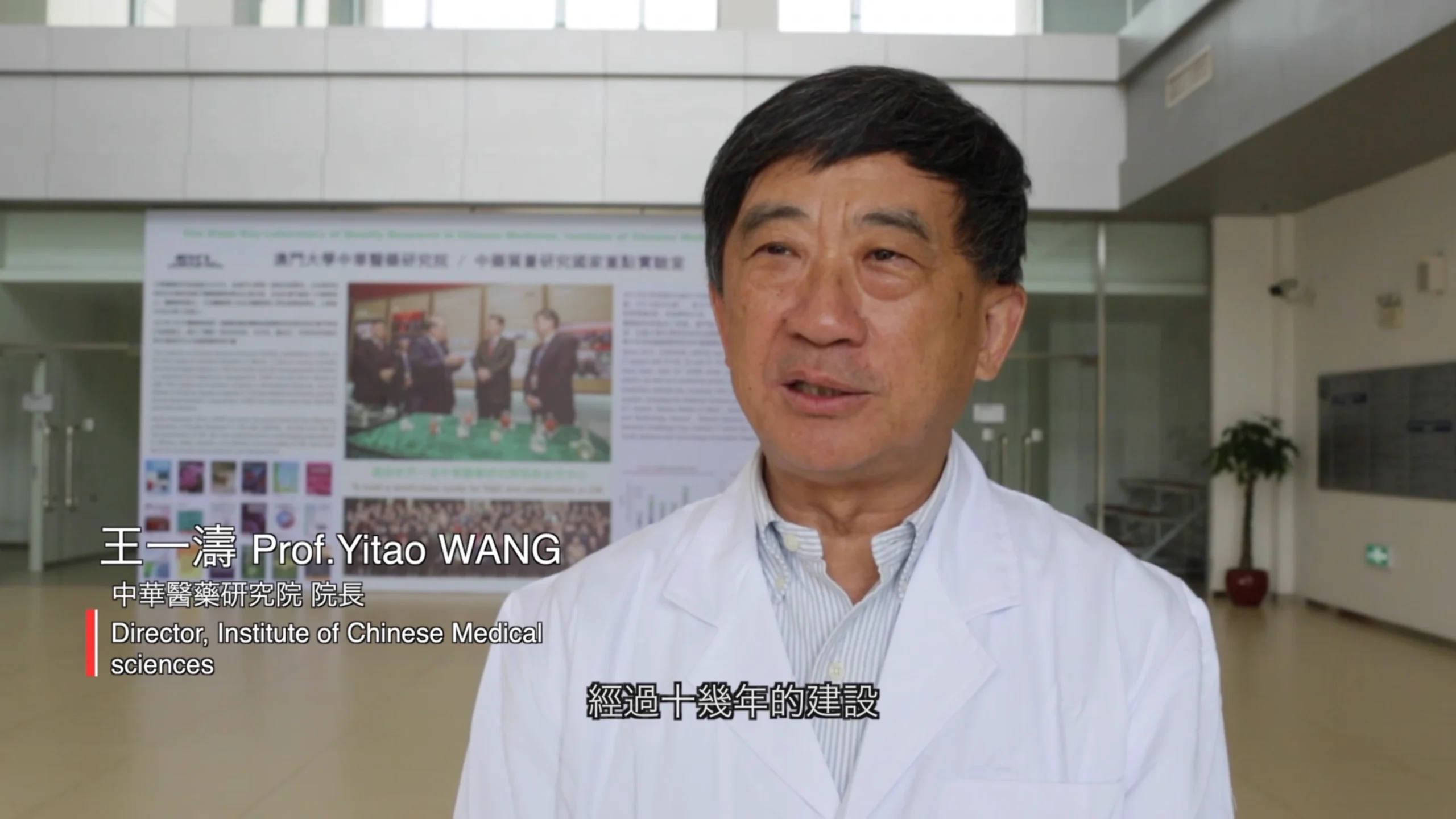 Still from the video presentation of the State Key Laboratory of Mechanism and Quality of Chinese Medicine at the University of Macau (2014), featuring Professor Yitao Wang, researchers and laboratory facilities