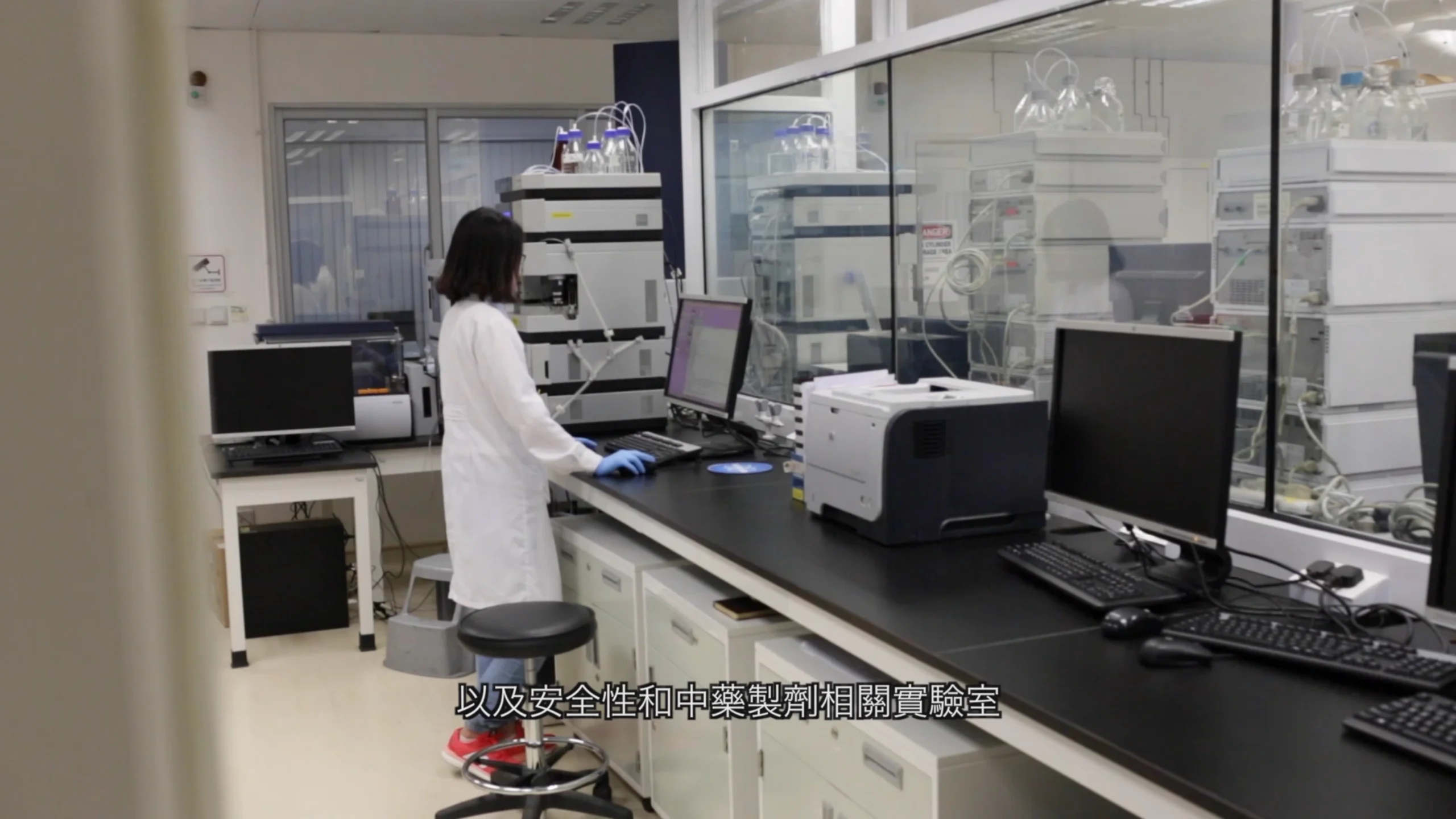 A lo largo del recorrido audiovisual se muestran distintas áreas del laboratorio, incluyendo salas de análisis y control de calidad, espacios de investigación farmacológica, laboratorios de bioensayos, áreas de instrumentación avanzada y zonas dedicadas al estudio de compuestos y mecanismos de la medicina tradicional china. Estas imágenes permiten comprender la complejidad técnica y la dimensión científica del trabajo desarrollado en el centro.